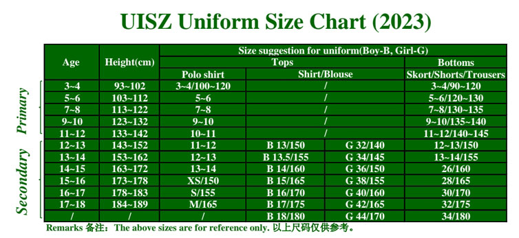 · All clothing items (with the exception of shoes, socks and stockings) must be purchased from UISZ's uniform shop. Compulsory and optional uniform items are detailed in the 'Uniform Booklet'.